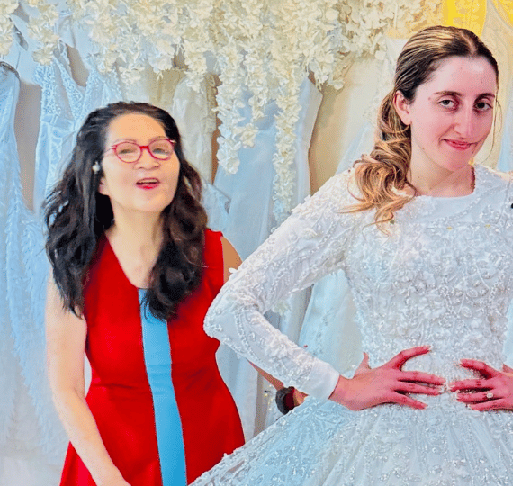 Behind every perfectly tailored gown at L’Mode Bridal is Dorie Kong. If dresses could talk, they’d probably confess their deepest fears to her. Dorie isn’t just our founder and head seamstress; she’s the heart, soul, and slightly sarcastic wit behind everything we do here.